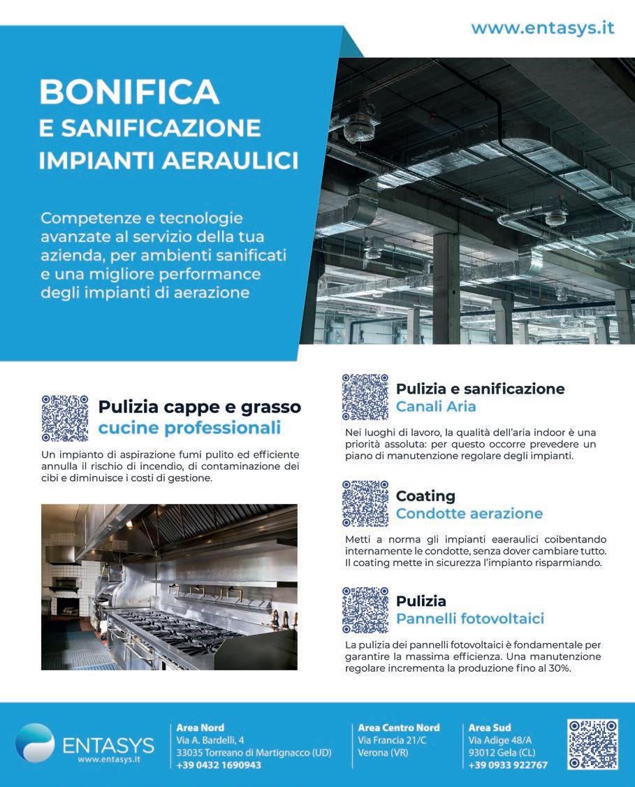 lizia e la bonifica delle cappe professionali è una condizione necessaria per garantire la sicurezza alimentare e rispettare le normative igieniche vigenti. Entasys offre soluzioni all’avanguardia per affrontare questa sfida, assicurando un ambiente di lavoro sicuro sia in termini di pulizia e sanificazione che come prevenzione da incendi che si possono generare nelle cappe professionali. Il grasso e i residui di cibo creano un am -