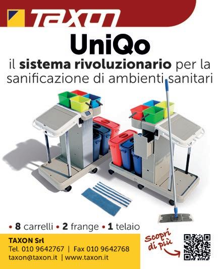 TAXON ha studiato il carrello UniQo per rendere più semplice e veloce il lavoro degli operatori delle imprese di pulizie: comprendere al meglio come lavorano, quali sono nel dettaglio le singole attività che svolgono, per renderle meno gravose e più fluide per la sanificazione degli ambienti sanitari. Spingere un carrello carico di frange pretrattate, spostare acqua e detergenti in quantità superiori a quelle che si utilizzano effettivamente, chinarsi per prendere, staccare, strizzare con forza e fissare le frange, sono tutte attività che svolte più e più volte causano ai lavoratori un eccesso di stanchezza, rallentando conseguentemente il loro lavoro. Cosa ancora più vera nel caso delle operatrici. Il sistema brevettato del carrello pulizie UniQo, basandosi sull’impregnazione con ugelli e programmando con precisione le superfici dei locali da sanificare durante il percorso, riduce i pesi da trasportare ottimizzandone la quantità. Questo al di là dei vantaggi economici per le società e le agenzie che offrono servizi di pulizia e sanificazione ospedaliera, che non sprecheranno né detergente né acqua, oggi un bene così importante da preservare. Con la nuova modalità operativa di UniQo, grazie alla quale gli operatori delle ditte di pulizia non entrano in contatto con le frange potenzialmente infette dei locali sanitari, è stata abbattuta la possibilità di contaminazione crociata degli ambienti e che i lavoratori possano a loro volta infettarsi. www.taxon.it