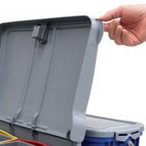 Il sistema di chiusura automatica blocca istantaneamente il coperchio quando viene chiuso, impedendo l’accesso non autorizzato ad attrezzature, prodotti chimici e materiale vario.