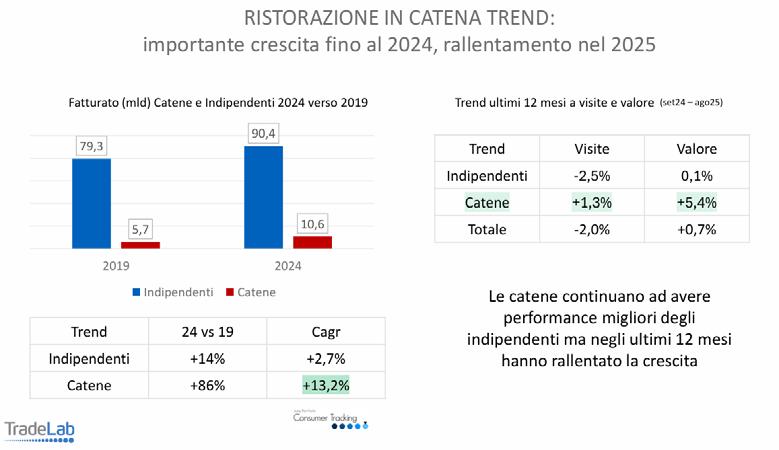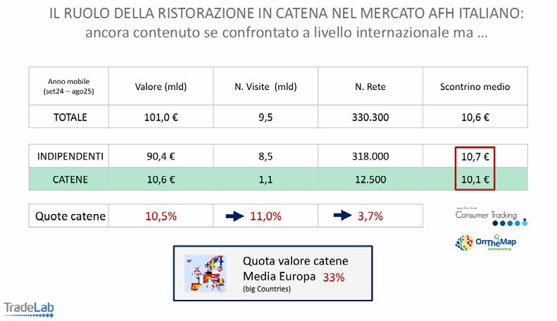 Le catene f&b in Italia valgono 10,6 miliardi di vendite e conquistano giovani e famiglie. Ma la crescita rallentata nel 2025 dopo il boom. E il gap con l’Europa è ancora ampio: 10,5% contro il 33%