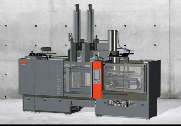per abbattere i rincari energetici, grazie a una riduzione dei consumi oltre il 50% e a una produttività aumentata oltre il 20%, con le caratteristiche tecniche di: forza chiusura 300 tonnellate; passaggio colonne 625x625 mm; piani di riscaldo 730x730 mm; capacità iniezione 590 cc a 2300 bar; impianto Ecotronic con motore da 15 kw e accumulatore; spazzola doppia totalmente elettrica. I vantaggi del modello EPG 300 sono quelli da sempre sottolineati ai clienti, dalla compattezza, con dimensioni di circa la metà rispetto a una pressa standard, alla movimentazione totalmente elettrica, dall’impianto idraulico con motore da 15 kw solo per il movimento di pressata all’iniezione con pochissimo olio e alla ripetibilità della movimentazione con precisione di quote al centesimo. La tecnologia Smartwire consiste in un’unica rete di informazioni, che collega tutte le apparecchiature della pressa con un solo cavo ethernet senza cablaggi elettrici, consentendo collegamenti in remoto a PC, tablet e smartphone, nonché alla teleassistenza con connessione automatica a RPMHELP. Tutti i componenti della pressa e tutti i parametri di processo sono così sotto controllo e, tramite software dedicati, è possibile effettuare diagnosi e automatizzare, incrementare e migliorare il processo produttivo.