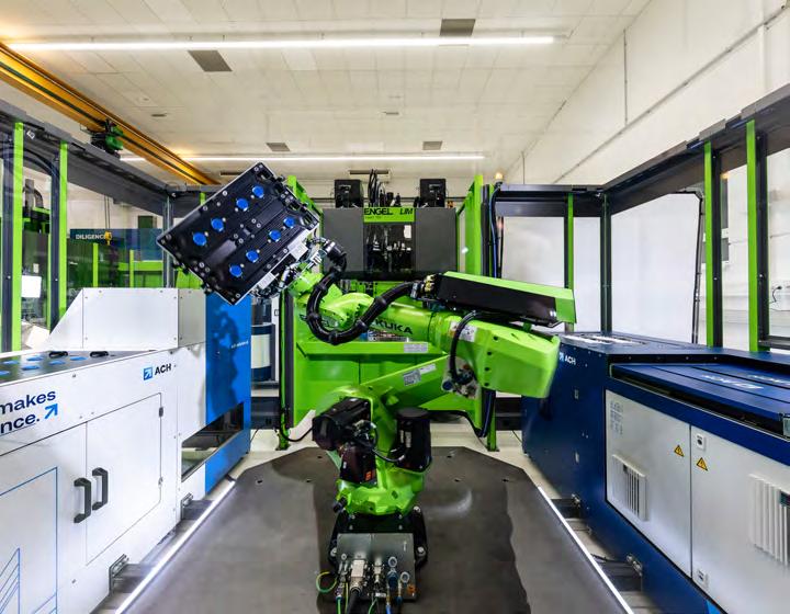 L a presentazione si è quindi spostata sulla pressa orizzontale elettrica EPG 300 Smartwire, che offre potenze di chiusura e forza di iniezione tipiche della pressa idraulica, ma è progettata