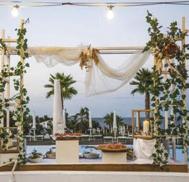 Food con vista La componente enogastrono mica, fondamentale per dare completezza e successo a un evento Mice, è assicurata ap punto dall’Attico Rooftop 225, dove gustare un aperitivo o i piatti preparati per gli ospiti è un piacere che si fonde con la bellezza negli occhi, grazie alla vista mozzafiato sul blu del mare Adriatico e sul verde degli uliveti. Piatti di pesce gourmet e spe cialità della tradizione rivisitate sapranno soddisfare i palati degli ospiti, che non dovranno perdere l’occasione di provare anche i prodotti d’eccellenza della Puglia dei sapori, dall’olio extravergine d’oliva Collina di Brindisi Dop al pomodoro fia schetto di Torre Guaceto, dal Capocollo di Martina Franca alla mozzarella fiordilatte da abbinare a un calice di vino,