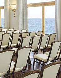 logistiche, è possibile scegliere tra vari spazi: il centro congressi con otto sale modulari (con una capacità di quattrocento posti), le quattro sale affrescate con luce naturale nella villa storica (che possono ospitare complessivamente duecento persone) e la sala clubhouse da sessanta posti, anch’essa illuminata naturalmente e con vista sul parco secolare, che offre ulteriori spazi per eventi all’aperto. Da segnalare anche le nuove boardroom, De Buris e Fiorato, rispettivamente di 48 e 44 metri quadrati. Questi spazi,