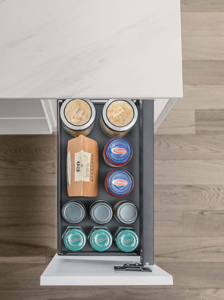Sistema de deslizamiento de cierre suave de 45 cm de profundidad.