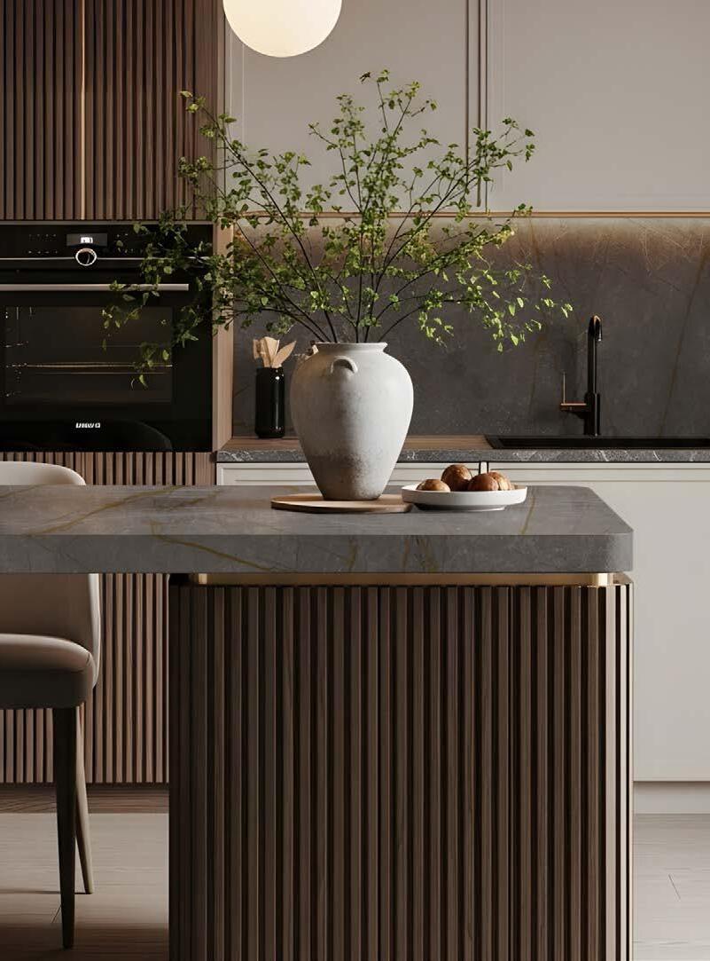 Su tono sobrio crea ambientes modernos que equilibran diseño, estilo y sofisticación.
