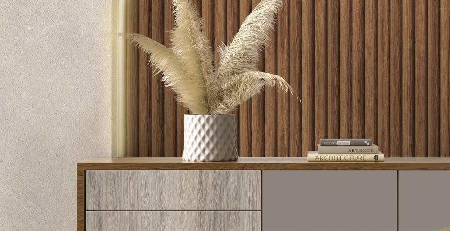 Acabado que reproduce fielmente las vetas, tonos y matices de la madera, aportando calidez y conexión con lo natural. Genera ambientes acogedores, equilibrados y visualmente armónicos, adaptándose a estilos modernos, clásicos o contemporáneos.