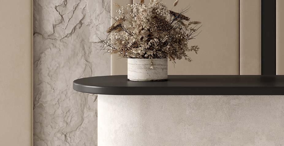 Acabado inspirado en la textura y apariencia de la piedra natural, que aporta profundidad visual, carácter y una sensación de conexión con la naturaleza. Sus matices y ligeras variaciones generan superficies sofisticadas.