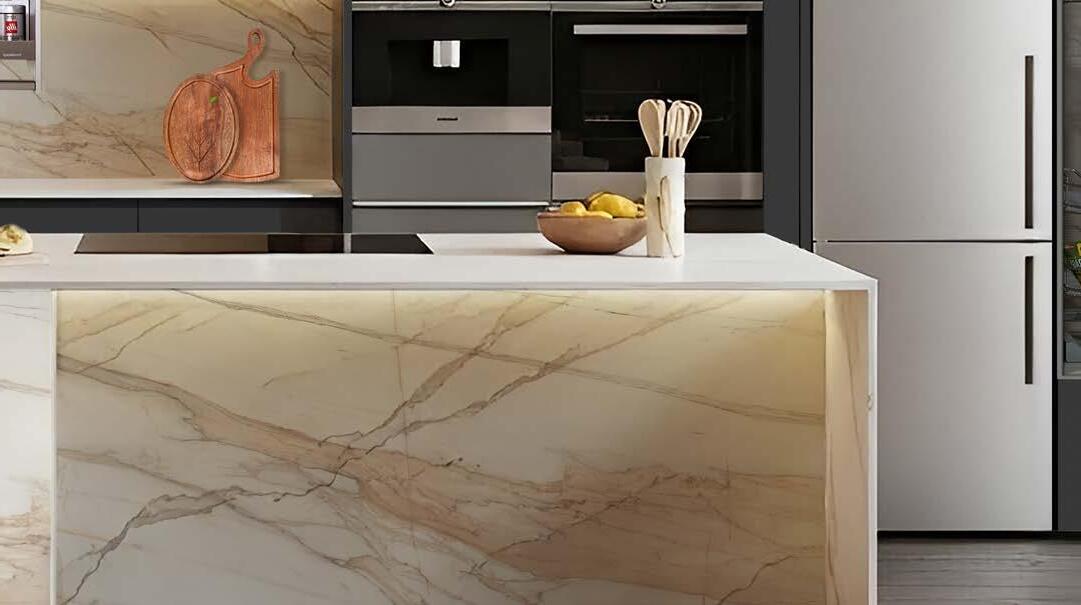 Superficies que se iluminan de belleza y elegancia y se adaptan a todos los espacios y estilos de vida. Este diseño que muestra con gran realismo el mármol.