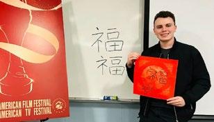 024龙年新春佳节期间,美国鹰龙传媒公司、中美电影节中美电视节组委会 携手中华广播影视交流协会及洛约拉玛丽蒙特大学(Loyola Marymount University)在学校共同举办了《汉字中国》等优秀中国视听作品系列展映活动, 现场教授学生书法毛笔字,让大家可以身临其境的感受“方正间”的中华文明,与师 生们共同度过了一个难忘的中国新年。