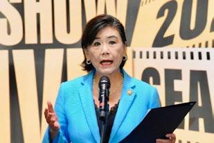 协办单位、美国城市广播电视台副总裁林淑婷 宣读上海市对外友好协会贺信 记者苏馨怡摄影