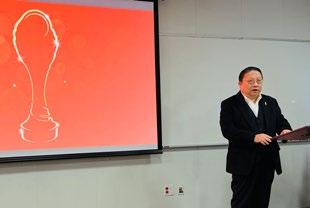 活动现场,中美电影节|中美电视节主席、美国鹰 龙传媒董事长苏彦韬先生向师生致以马年新春祝福并表