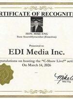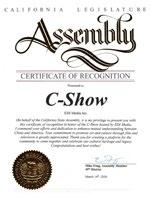 加州众议员方树强强调:“加州是多元文化汇聚之地, 我们高度重视青年成长与发展。C-Show不仅是一个艺术 竞赛,更是一个教育项目,鼓励年轻人用创意表达自我,用 合作连接彼此。我期待这一项目持续扩大影响,让更多青少 年受益。”方树强随后向主办方及获奖者颁发贺状。
