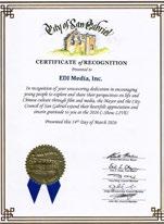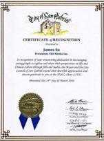· 圣盖博市市议员吴程远、丁言愉为《CHINESE LUNAR NEW YEAR》代表Angela Li颁发“最佳微视 频奖”