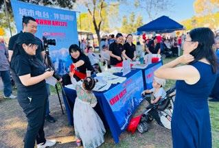 活动当天,美国城市电台AM1370在园游会主会场 设立直播专区,吸引众多电台听众及社区民众前来打卡参 与。主持人与现场观众亲切互动,分享新春祝福,带动节 庆氛围不断升温。