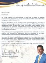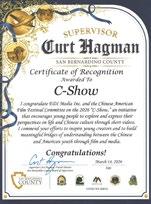 加州财务长马世云、洛杉矶郡郡长希尔达·索利斯、 圣伯纳迪诺郡郡长科特·哈格曼等也专程发来贺信与祝贺 视频,高度肯定“秀中国”(C-Show)活动在中美青少