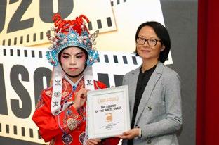 由美国少儿京剧学校选送的《THE LEGEND OF THE WHITE SNAKE》(《白蛇传》之“水漫金山”) 荣获最佳微视频奖,获奖者Jacob Kong与年过80岁的老 师胡建荣及其他小伙伴们一同在现场表演了这段京剧经典 片段,赢得满堂喝彩。