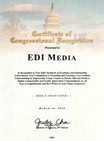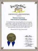 美国国会议员赵美心博士充分肯定C-Show对亚裔社 区的积极影响。她表示:“C-Show让青少年有机会讲述 自己的故事,展现文化多样性。我欣喜地看到这么多年轻 创作者通过镜头表达对身份、社区和友谊的理解。这样的 活动有助于增进不同族裔间的相互尊重,也让我们看到亚 裔青少年在美国社会中的活力与创造力。”随后,赵美心 博士向主办方颁发国会贺状,表彰其长期以来对中美文化 交流的贡献。