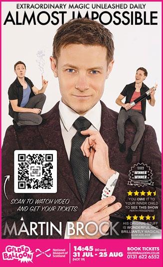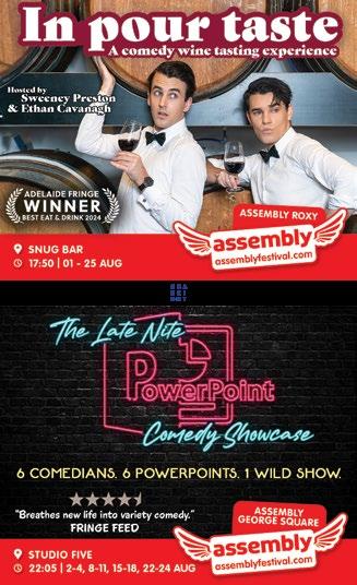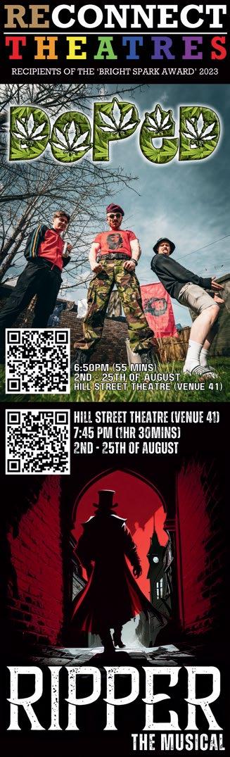 While every care has been taken to ensure the accuracy of information at the time of going to print, the Edinburgh Festival Fringe Society (EFFS) cannot accept liability for any errors or omissions. Please note that all information contained within the programme is subject to change. The Edinburgh Festival Fringe contains a wide range of shows and events, not all of which are suitable for all ages; parental discretion is advised.