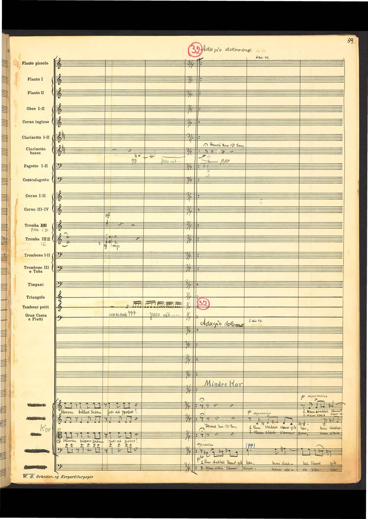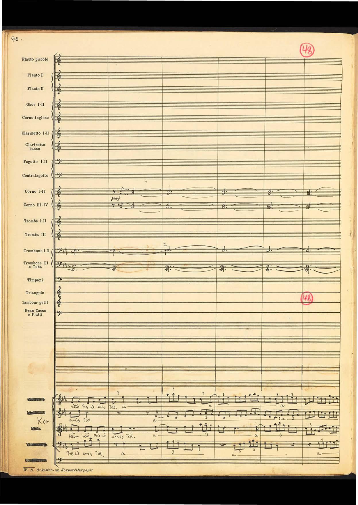 Flauto piccolo Oboe I-II l Corno inglcse Clarinetto I-II l Clarinetto basso Fagotto I -Il j Contrafagotto { Corno 1-11 } Corno III· IV { Tromba. l ~iU, Tromba Hil!t i C. Trombone HI l Trombone III .i Tuba Tilnpani Triangolo Tambour petit Gra.n Cassa e Piatti I) ... A ., 11,i ... A ., /I V 111 V 11U .., I\ .., /I .., A ., /I --.., : 0 ' -. / i, A V . ., n e} '\ ,>.1, ~•t•f- ,• ,. ,~'j# ...1 1r-1 u ti1 -... 1--, .... 1t- lf j u ~; 'I i'!,'°Jtl. So~- ;I ''('},, " " ~(lfili~~ W. li. Orkester-og Korpartiturpapir lf' 1f. ., • ' ~,. ..,,t 'It o" tl,2, #å ti~ b~ ""-'r o.:L, f ,.irQIM-Sc.d 1.. ·""(I .. it L,.• ø.t.<,JC.1,rt,{, li. I ko-1 .: lllU,I., C: ~I- It~ So,., ocir j 0~ " " k01-tw.~k Q• jo&ju,,t Oq ilo(..1"<-i:. ,. I 1w ,i.;,. ~- si./ s~ °? 1ot, f'1