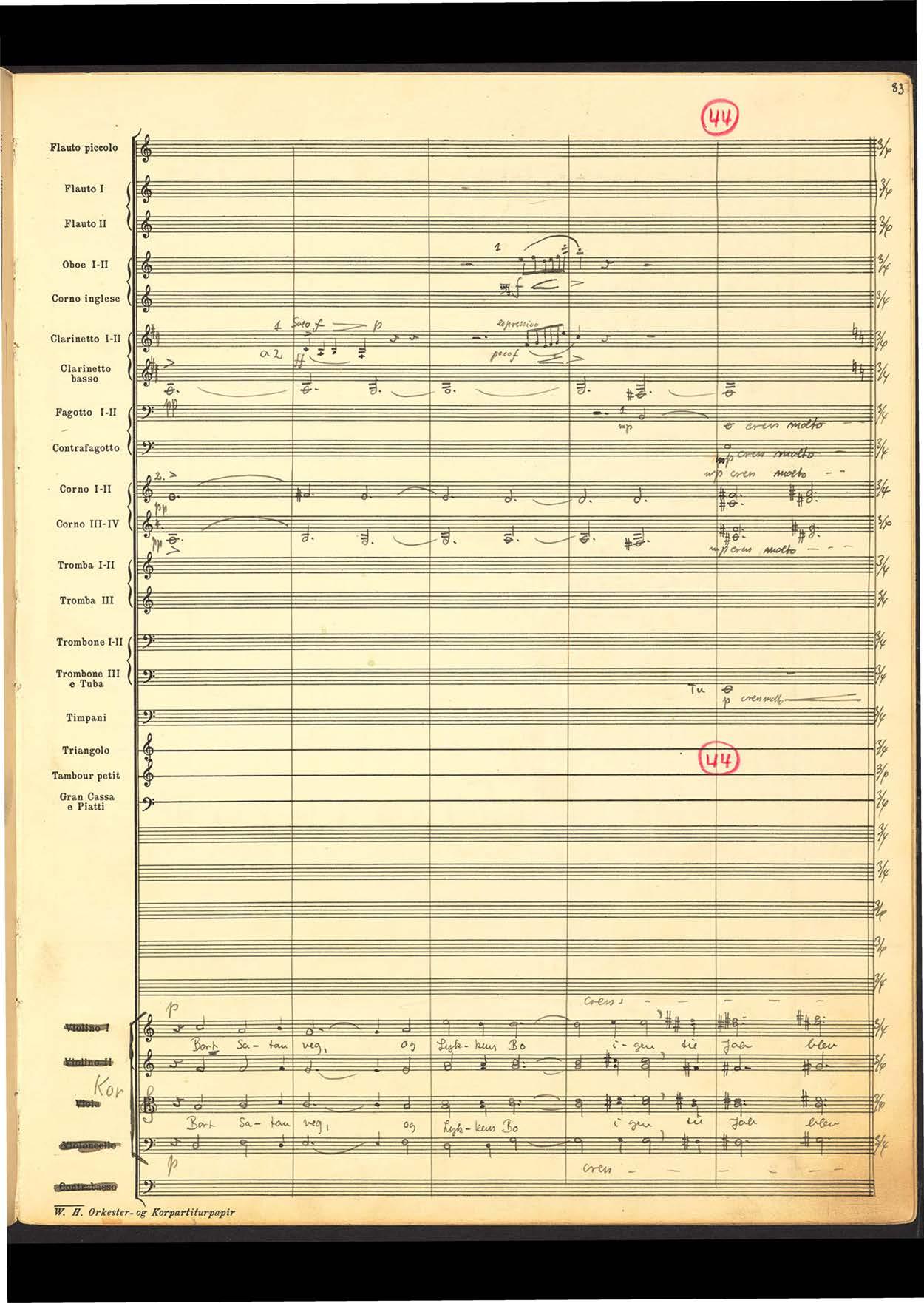 4UM. boppoi :l,O J" Fla.uto piccolo Fla.uto llfJlr Oboo 1-11 Corno inglese Clarinetto Hl i6 Cia.ri netto basso i 8 Fa.gotto 1-11 Contra.fagotto Corno 1·11 Corno III· IV Tromba J.11 Tromba III Trombone I-Il Trombone III e Tuba Timpa.ni Tria.ngolo Tambour petit Gra.n Cassa e Pia.tti ..... ltor .... l l l l l l., ,. - /'I ., ... "- ""' ., T ,. ,,. I"'\ ., ,."" ..... "' Ah~ ,... "' I Aa r" r., ., 1'0i. ---i T I ,. ,.. ti I I.~ 1.'tC<M S..,... M. ,. " 1 0.1. li~ ,... ., li - .,,.,_ " "I - r, t>,I. 1-l.'l. co. ~o,-d,. '2 'r • r.:, 0 'f ' - 'f1 'o{ t:' i -.~. /I ,,. ",.._._.... J l - /"', t .A .11. ,I, I. '..,, ( ~,A \; " 1 ,lu,, s~ s\.,1 ..A " T u.,,,Y-1 ... (~'n_ 1J r - I':' 'r '\W. li. Orkester. og-Korpart;turpapir 2 . ,,.2'11---:::,,-. ,p - ' ;. ------III ,,, f 1ft 1fl""JI~-,11b (i0 J . .,.-...,2- 'v~· I' -i-- ..,____.i IJ t ;:::::,,-1' ••. J -:::•/Uu1C\ 2.. . + ~· rJ '.... ,._......e: •-M ;._i ....,, t. ~-= ....... ;i :.: ~hrtø ,,.;i ...._+.ltt3/1::, >/1-7 - --'ff •~bj ) L J. 2. 1" r---i ·- I ,-., - -. I ' <o I :::, ok a.iat I ~.Htt,.l,, ha.¼ _ ji,t,.½it0:~ ,I :;.:::.1 • æfl i