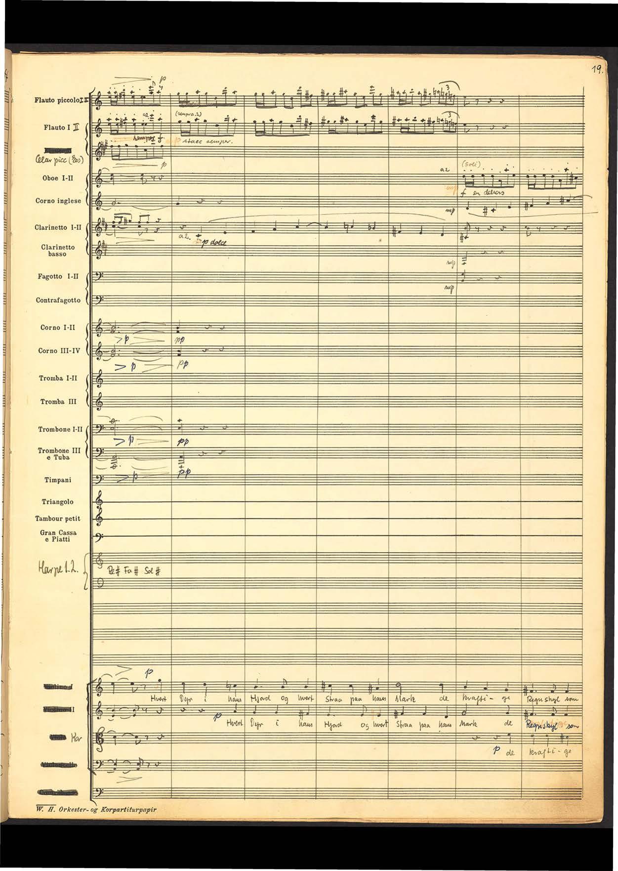 F!auto piccolo Fla.uto I lrlll ..... Oboe 1-11 Corno inglese Clarinetto 1-11 Cia.ri netto ba.sso Fagotto 1-11 Contrafa.gotto Corno I-Il Corno III-IV Tromba. EB f,¼lo i1> Tromba I11llt I C.. Trombone Hl Trombone 111 e Tuba Timpani Tria.ngolo Tambour petit Gran Cassa e Piatti l l l l l l l ) I (, ) li ., " --. ., li V r. = li ., Il ., _fl ., '-~ . li -;._-...,. ., '--'.:.~ " I ., n,D ·~l ,1 "'· I/ -.. . _... J \; v l_n ., R-,Ho.li .. ",! ... ·0-~ \.Ø .__ 7 'f'f '- '1 y,, t b~, '-- b' '--' Ji+ ~_i_i ; . So,...w 1 'ilo+rt , ... n (J rg S,n,w-v I Mrt •il t llu " I t esc \"' t·t •W. H. Orkester-og n.orpar 1 11..rpaprr 0) )b.:, I bj ..... 1"4 . --- 1,,..<r" '2;;:. = :-'""-: '3 .:= i--~ -;,___y. ---$-• ...\__.®, ., v •. -Q• b<jl J bi -i~ i·V I '-.,. '4l) b':t ..._-; b~-tr'o~ 4b; tt'o7.-:; 1)0$ti~lu. ~-~•l'V.:d\.~,...,i,,,, ltc.«< , \ketllw.rltw.1ww lrCW.~c<) fl!:!1;.