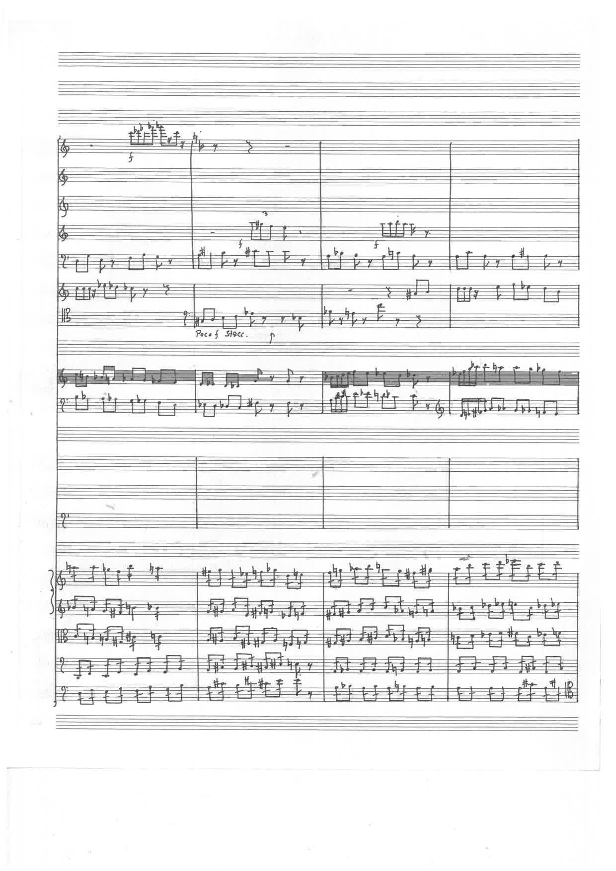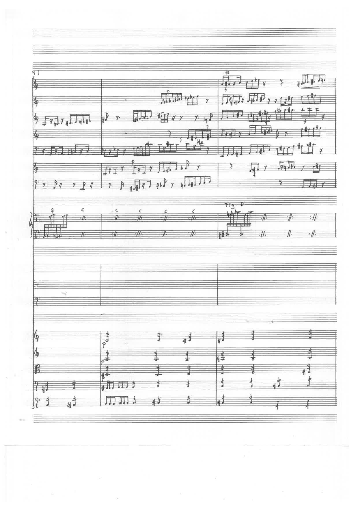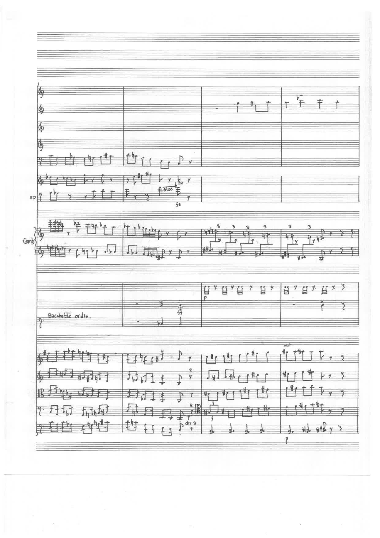 On the bottom left side of the painting, part of the neck of a cello can be seen. Ensor has thus hinted that there is music accompanying the scene he is painting. This composition is my take on that accompanying music. I let death play the harpsichord, and the seven masked figures are represented by various wind instruments. When performing the work, the wind instruments must be placed in front of the orchestra, two on one side and five on the other side of the harpsichord, just as in Ensor’s painting, which must be displayed on a large screen behind the orchestra if possible.