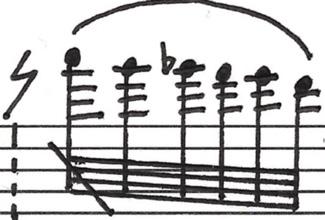 Trills and tremoli occur in variable speed in the piece, where four lines indicate the fastest possible. Trills and tremoli can also increase and decrease in speed, indicated in the following way: