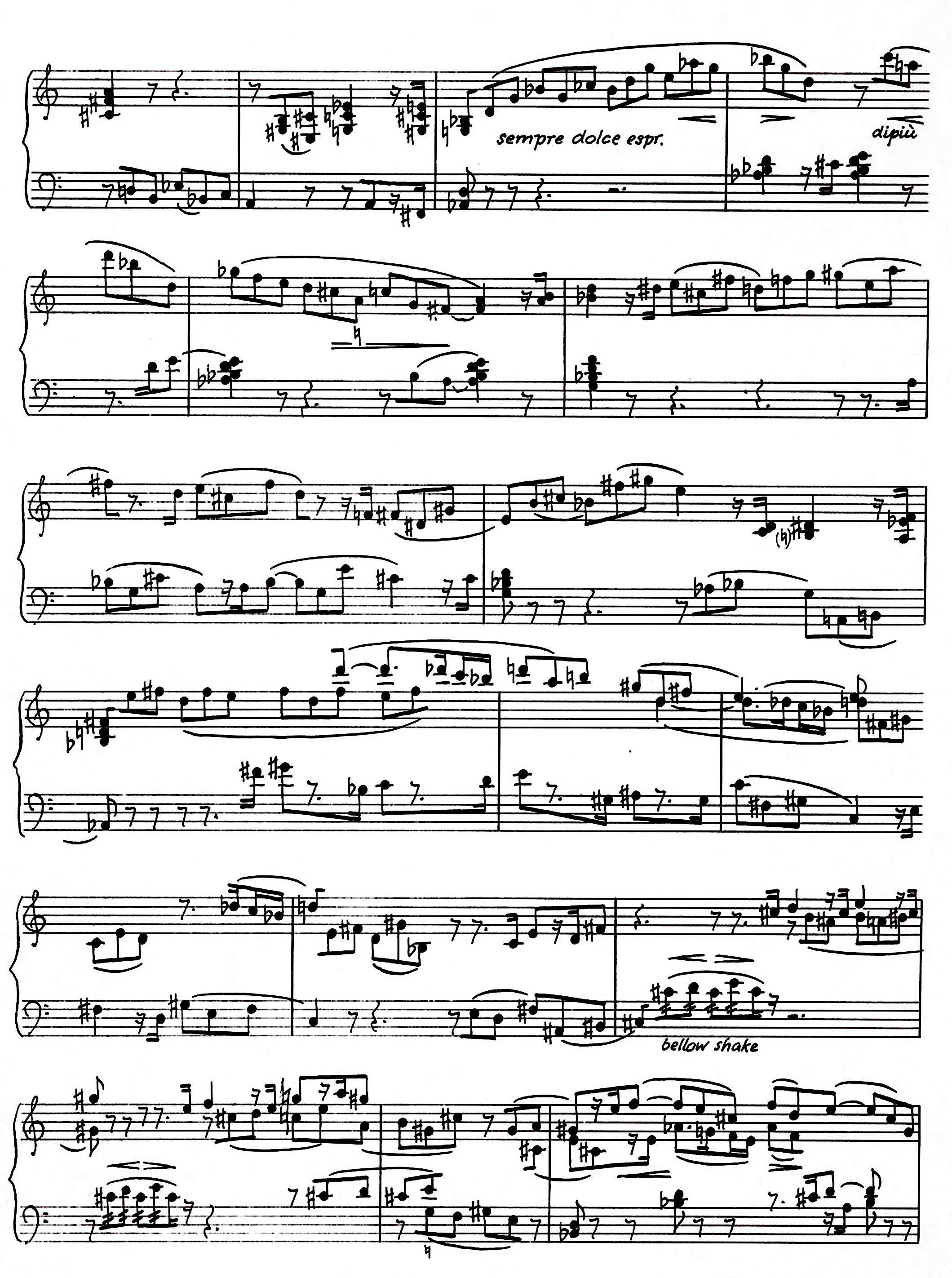 When the present sonata was being prepared for publication, it became apparent that there were several handwritten versions of the manuscript in Leif Kayser’s collection at the Royal Library. They appear to be from different periods of Kayser’s life, based on the extent to which they are affected by his – in later years – increasing tremor. Some movements are dated to the mid-70s, when this was not yet a problem. The differences may be of a notational nature without any audible change, in some places a part is raised an octave, and others simply have to do with the arrangement of bars per line/page. In any case, there are minor changes in the different versions.