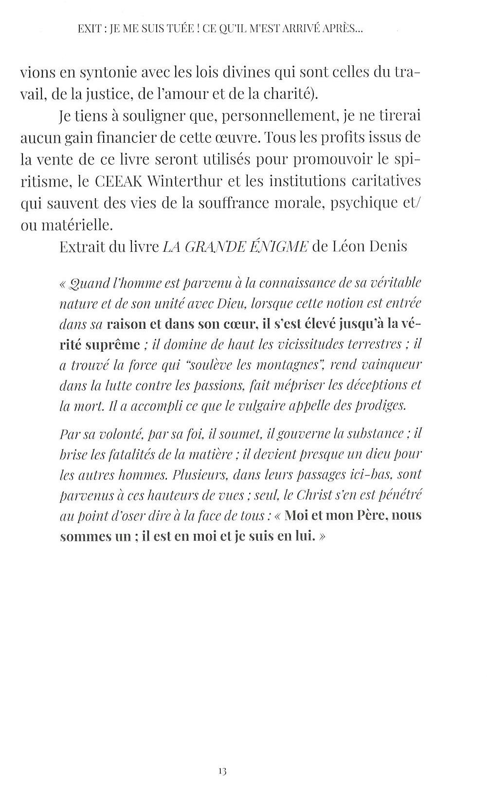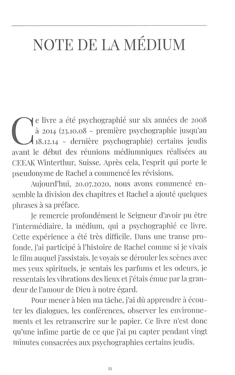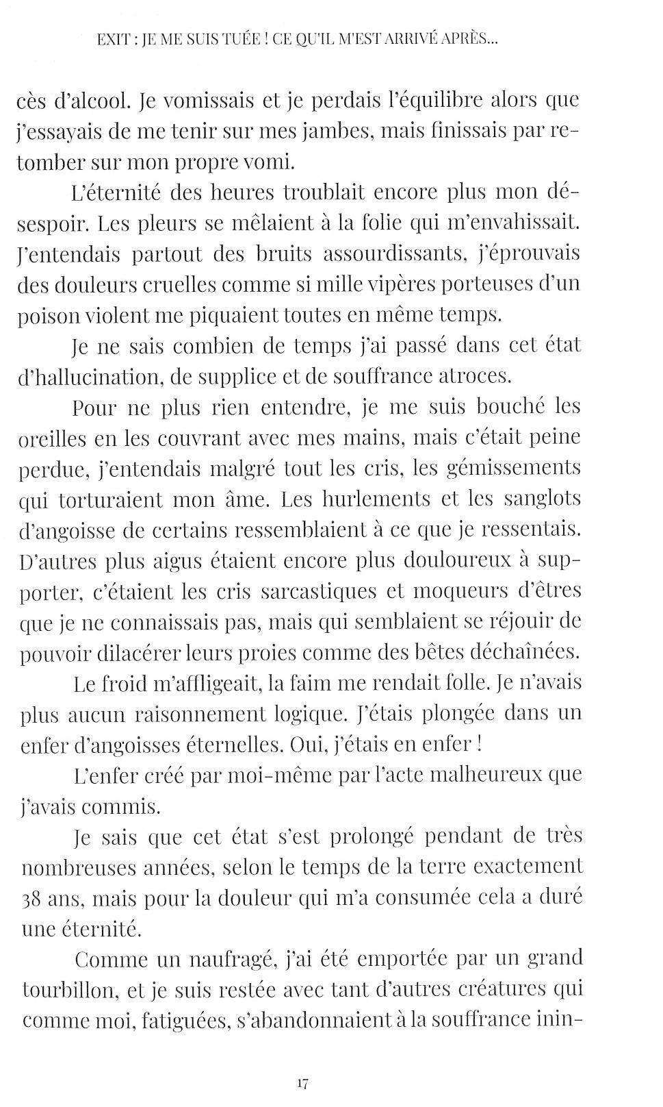 Les informations fournies dans ce livre sur le suicide et ses conséquences spirituelles sont d'une importance capitale. Rachel s'est tuée au début du XX siècle. Dans cet ouvrage, elle nous raconte avec beaucoup de sensibilité son histoire personnelle, ce qui l'a amenée à commettre un tel acte, comment elle a été déconnectée de sa vie physique et les souffrances qu'elle a dû supporter jusqu'au moment de son sauvetage et de son rétablissement. Grâce aux quelques détails qui dévoilent ce qui arrive aux gens avant, pendant et après le suicide, nous espérons que ce livre sera une source de réflexion pour le lecteur, qu'il génèrera un nouveau paradigme éthique sur la question du sens réel de la vie.