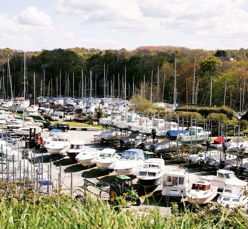 à partir du port à sec PORT MINIC situé dans la zone d’activité plaisance du moulin de Fosse-Mort au Minihic / Rance (35870) à quelques encablures de la pleine mer par le barrage ou de Dinan par la Rance, un port terre et mer.