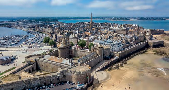 Ses remparts de 1 754 mètres offrent les plus beaux points de vue sur les forts Vauban de la baie de SaintMalo. Intra-muros, les demeures des armateurs malouins gardent les souvenirs de rêve, d’aventure et de voyages de grands hommes : Chateaubriand le Romantique dont la tombe face au large se visite à marée basse ; les corsaires Robert de Surcouf et René Duguay-Trouin ; Jacques Cartier et son manoir relatant son périple au Canada.