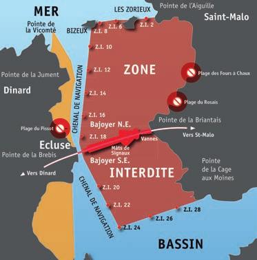 Une zone interdite (ZI) à la navigation, aux activités nautiques et subaquatiques, et à la baignade est située de part et d’autre du site de production d’électricité de la Rance. Elle est délimitée par des bouées rouges.