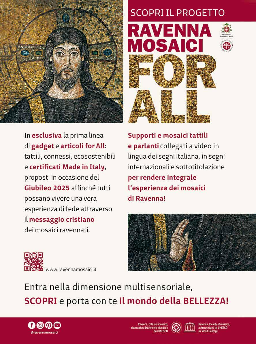 Compared to the past, the 2025 medal features a vertical shape and a symbolic message: the frame becomes an element of unity and continuity, a reference to the expressive power of the mosaics that have illuminated Ravenna’s monuments, now a UNESCO World Heritage Site, for centuries.