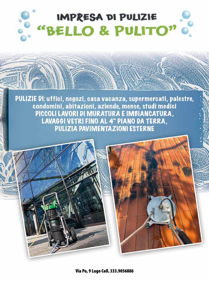 Questo periodico è aperto a quanti desiderino manifestare il loro pensiero, senza recare pregiudizio ad altri, ai sensi dell’art. 21 della Costituzione e, pertanto, la sua Redazione è disposta a ricevere testi scritti, fotografie, immagini ed altro materiale dai lettori. Tuttavia, l’eventuale pubblicazione, anche in via telematica, di quanto inviato alla Redazione di questo periodico, è a totale discrezione della Redazione medesima. In ogni caso l’eventuale pubblicazione non determina la costituzione di alcun rapporto di collaborazione dei lettori con la stessa Redazione e/o con l’Editore, né obbligo di pagamento di alcun importo da parte della Redazione e/o dell’Editore del periodico. L’invio del materiale è a titolo gratuito. Quanto inviato alla Redazione, anche se non pubblicato, non verrà restituito al mittente. Per l’invio del materiale l’indirizzo è: redazione@ravenna24ore.it È vietata la riproduzione totale o parziale di foto, marchi e testi. Copyright, tutti i diritti riservati ad Edit Italia Srl.. www.Ravenna24ore.it Weekly - settimanale di fotocronaca • Direttore editoriale: Carlo Serafini • Direttore responsabile: Marco Montruccoli Testata registrata presso il Tribunale di Ravenna al n. 1367 del Registro della Stampa in data 02/o9/2010 Stampa: CSQ (BS) Editore: Edit Italia Srl.