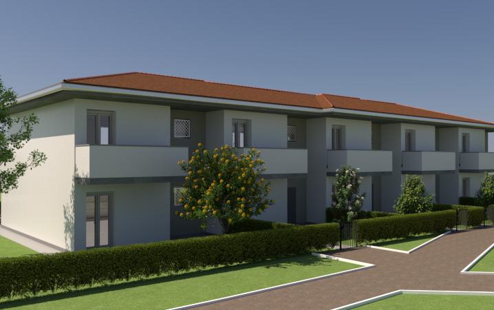 Appartamento (n.8) con: soggiorno con angolo cottura, balcone loggiato, 2 camere. cantina e posto auto al piano terra. Risc. autonomo a pavimento. possibilità di posto auto e cantina. Possibilità di recupero con detrazione fiscale. CL EN A4.