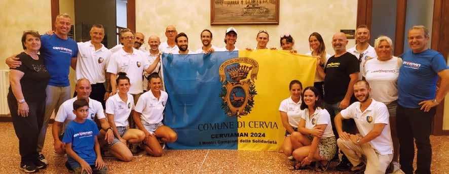 Martedì 3 settembre si è svolta la tradizionale consegna della Bandiera della città ai Cerviaman impegnati in Ironman Italy Emilia Romagna 2024. Il Sindaco di Cervia, Mattia Missiroli, e il Vicesindaco e Assessore allo sport, Gianni Grandu, hanno consegnato il simbolico e significativo stendardo, personalizzato con la scritta: “Cerviaman 2024. I nostri campioni della solidarietà”, in riconoscimento della vocazione sportiva e sociale del gruppo. Sono circa una quarantina gli iscritti Cerviaman.