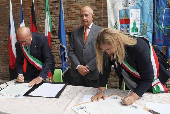 Cerimonia di firma del Patto di gemellaggio tra i Comuni di Russi e MontescudoMonte Colombo (Rimini) alla Rocca di Russi. Intervenuti la sindaca di Russi Valentina Palli, il sindaco di Montescudo-Monte Colombo Gian Marco Casadei, Antonio Patuelli, Cittadino Onorario di Russi. Il Patto di gemellaggio suggella un legame storico grazie a due illustri cittadini russiani: Luigi Carlo Farini fu medico di famiglia a Montescudo nel 1834 e 1835, dove il 2 luglio 1834 nacque il figlio Domenico.