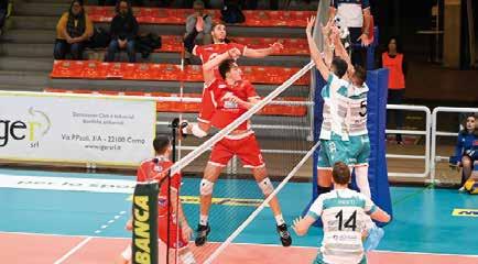 Dopo tre successi di fila, la corsa della Consar Rcm si ferma in casa di Cantù. I giallorossi capitolano 3-1, nonostan te il primo set vinto, i ventuno punti di Bovolenta e la superiorità a muro. Trascinati da Gamba e con una qualità di gioco cresciuta nel corso del match, i lombardi si aggiudicano il poker di vittorie. (foto di Patrizia Tettamanti)
