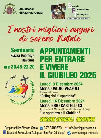 Questo periodico è aperto a quanti desiderino manifestare il loro pensiero, senza recare pregiudizio ad altri, ai sensi dell’art. 21 della Costituzione e, pertanto, la sua Redazione è disposta a ricevere testi scritti, fotografie, immagini ed altro materiale dai lettori. Tuttavia, l’eventuale pubblicazione, anche in via telematica, di quanto inviato alla Redazione di questo periodico, è a totale discrezione della Redazione medesima. In ogni caso l’eventuale pubblicazione non determina la costituzione di alcun rapporto di collaborazione dei lettori con la stessa Redazione e/o con l’Editore, né obbligo di pagamento di alcun importo da parte della Redazione e/o dell’Editore del periodico. L’invio del materiale è a titolo gratuito. Quanto inviato alla Redazione, anche se non pubblicato, non verrà restituito al mittente. Per l’invio del materiale l’indirizzo è: redazione@ravenna24ore.it È vietata la riproduzione totale o parziale di foto, marchi e testi. Copyright, tutti i diritti riservati ad Edit Italia Srl.. www.Ravenna24ore.it Weekly - settimanale di fotocronaca • Direttore editoriale: Carlo Serafini • Direttore responsabile: Marco Montruccoli Testata registrata presso il Tribunale di Ravenna al n. 1367 del Registro della Stampa in data 02/o9/2010 Stampa: CSQ (BS) Editore: Edit Italia Srl.