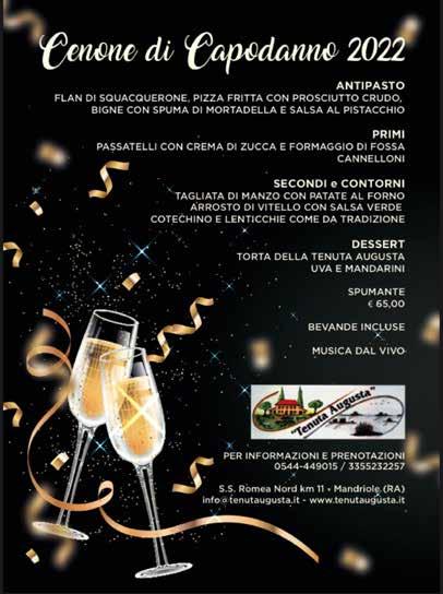 Lavoratori e pensionati in piazza per lo sciopero generale di Cgil e Uil “Chiediamo giustizia sociale” Le video proiezioni di “Ravenna in Luce” sulla Basilica di San Francesco n° 51 mercoledì 21 dicembre 2022 - sett. 51 - anno XIII all’interno: Speciale Feste a Ravenna e provincia IL DIARIO DELLA SETTIMANA DISTRIBUITO NEI LOCALI PUBBLICI DI RAVENNA E PROVINCIA DA: COPIA OMAGGIO BUONE FE S T E