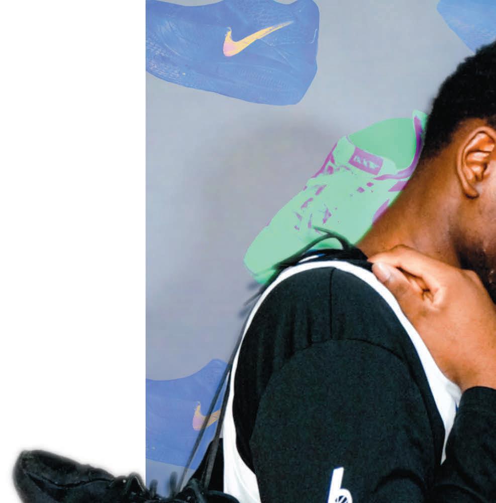 TMU men’s basketball guard Michael Kayembe with his Nike Sabrina 2’s (PHOTO: KHADIJAH GHAURI, GRAPHIC: SAIFULLAH KHAN/THE EYEOPENER)