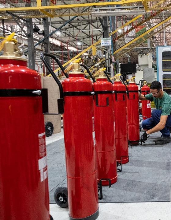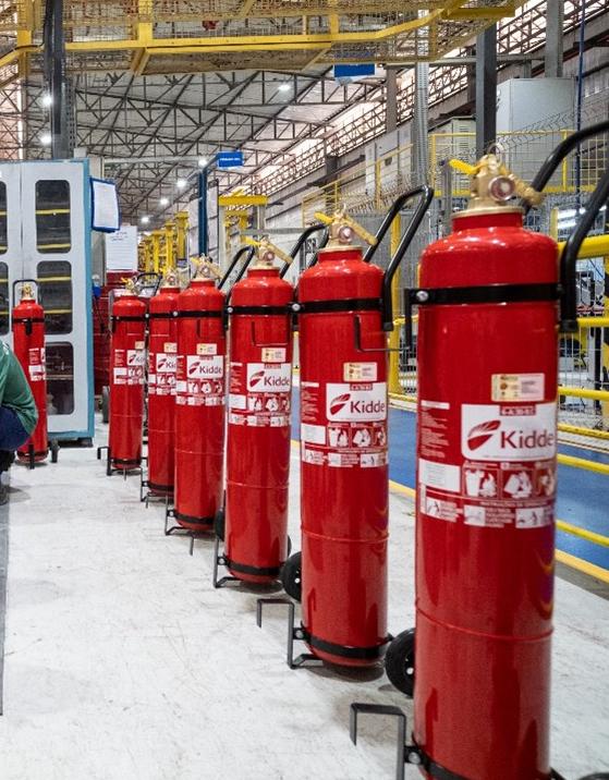 CO2, água e pó químico, disponíveis nas versões portáteis, sobre rodas e automotivas, para as classes A, B e C, além de extintores especiais para a Classe K. A planta também produz mangueiras e espumas sem flúor da marca Kidde, ampliando ainda mais sua gama de soluções.