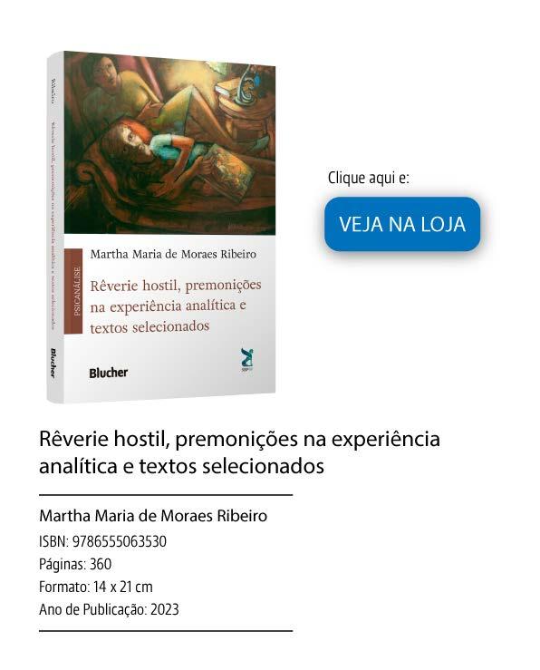 Ribeiro, Martha Maria de Moraes Rêverie hostil, premonições na experiência analítica e textos selecionados / Martha Maria de Moraes Ribeiro ; organização de Paulo de Moraes Mendonça Ribeiro ; revisão técnica de Ana Márcia Vasconcelos de Paula Rodrigues, Paulo de Moraes Mendonça Ribeiro, Sônia Maria Nogueira de Godoy. –São Paulo : Blucher, 2023.
