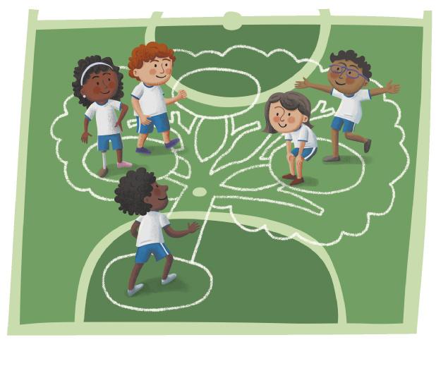 Material necessário: aparelho eletrônico para reproduzir música, cópias impressas de fábulas variadas (sugestões: A cigarra e a formiga, A lebre e a tartaruga, O leão e o rato, O corvo e a raposa, entre outras). Espaços: quadra, campo ou pátio da escola.
