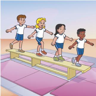 mais equilíbrio durante o deslocamento, como esticando os braços nas laterais ou apoiando as mãos na cintura. 4. A fim de dar mais ludicidade à atividade e de valorizar