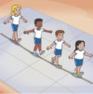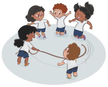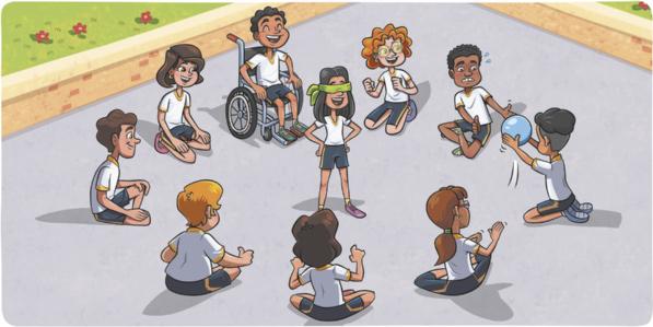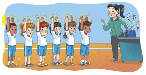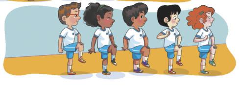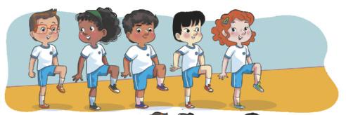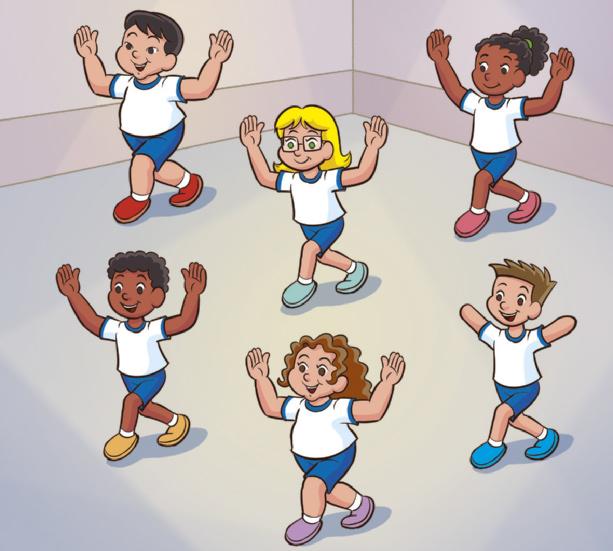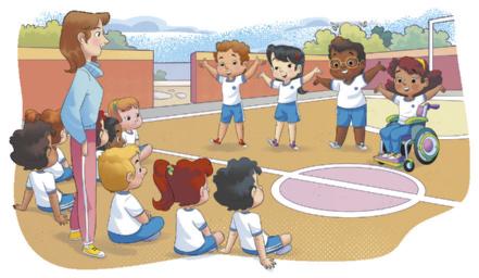 5. Caso haja, na turma, estudantes com dificuldades de mobilidade ou cadeirantes, proponha que todos realizem a atividade sentados, ainda que em fila, fazendo gestos conforme suas possibilidades de movimento, trabalhando a empatia e a colaboração.