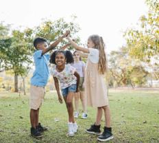 Crianças realizam brincadeira com dança. Brasil, 2024. Para desenvolver