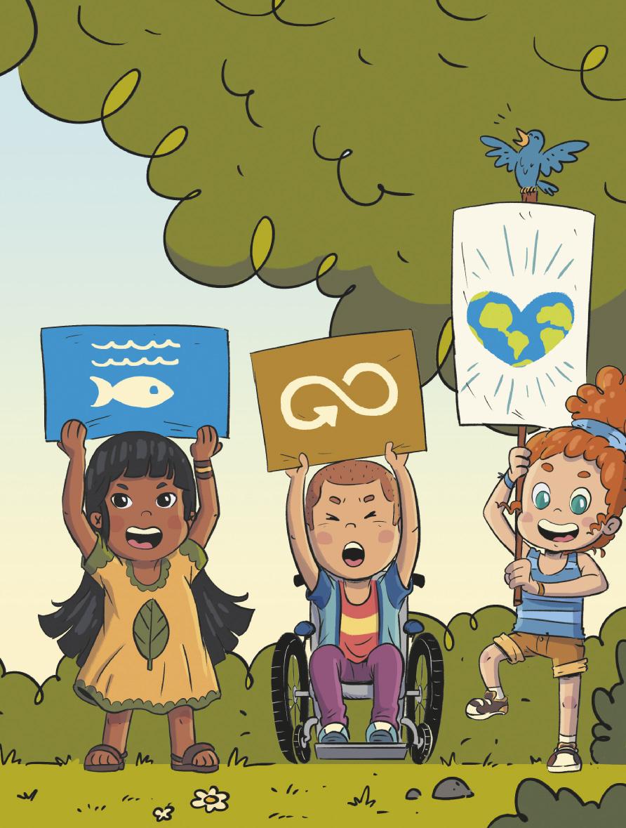 balões de fala. • Planejar e produzir uma HQ. • Desenvolver estratégias de produção: planejamento, revisão, edição, reescrita e avaliação. • Planejar e produzir um convite oral. BNCC Habilidades: EF15LP01, EF15LP02, EF15LP03, EF15LP04, EF15LP05, EF15LP06, EF15LP07, EF15LP09, EF15LP11, EF15LP12, EF15LP14, EF15LP18, EF35LP03, EF35LP04, EF35LP10, EF35LP22, EF35LP25, EF35LP29. Tema contemporâneo transversal: Meio ambiente.