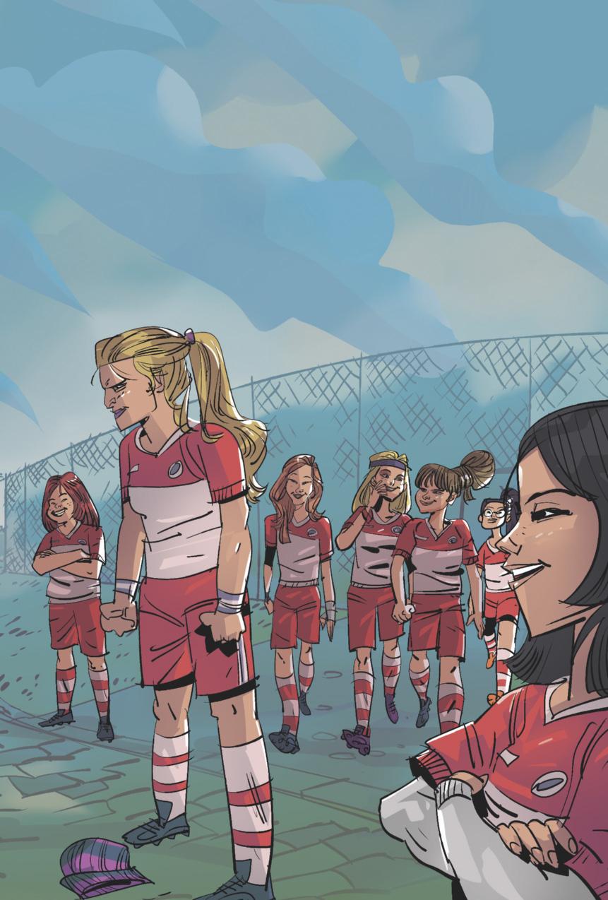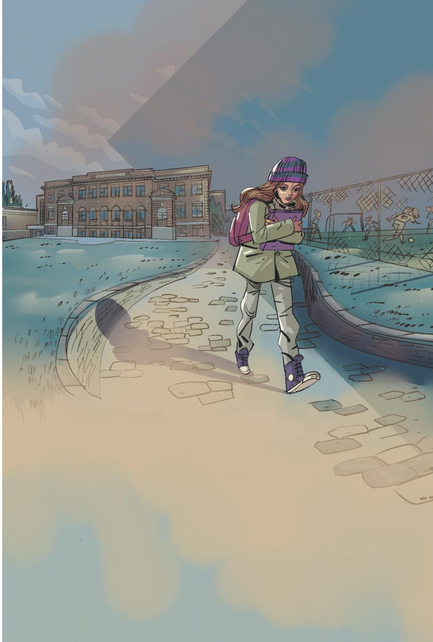 Janie Dawson is in the computer room at Redbridge School. She’s doing her math homework. Suddenly, she’s hungry. She looks at her watch. It’s 5.30! Dinner time. She gets up, and puts her things in her bag. She puts on her coat and hat, leaves the computer room, and walks across the school field. It’s November and it’s very cold, freezing. Janie walks fast. There are some girls playing soccer on the field. It’s Sam Brown and her friends.